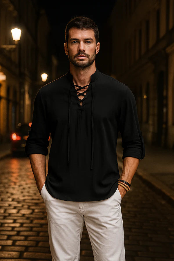 Monarch Chemise Bohème en Lin – Élégance Décontractée à Lacets