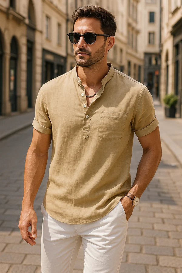 Monarch Chemise Été – Col Montant Décontracté en Lin & Coton