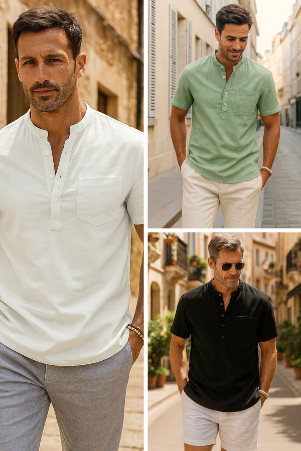 Monarch Chemise Lin & Coton – Col Henley Décontracté