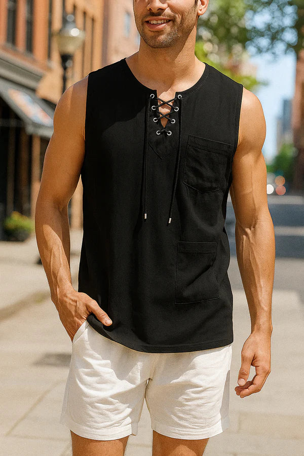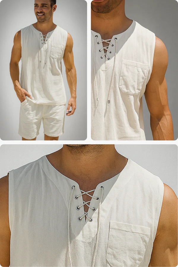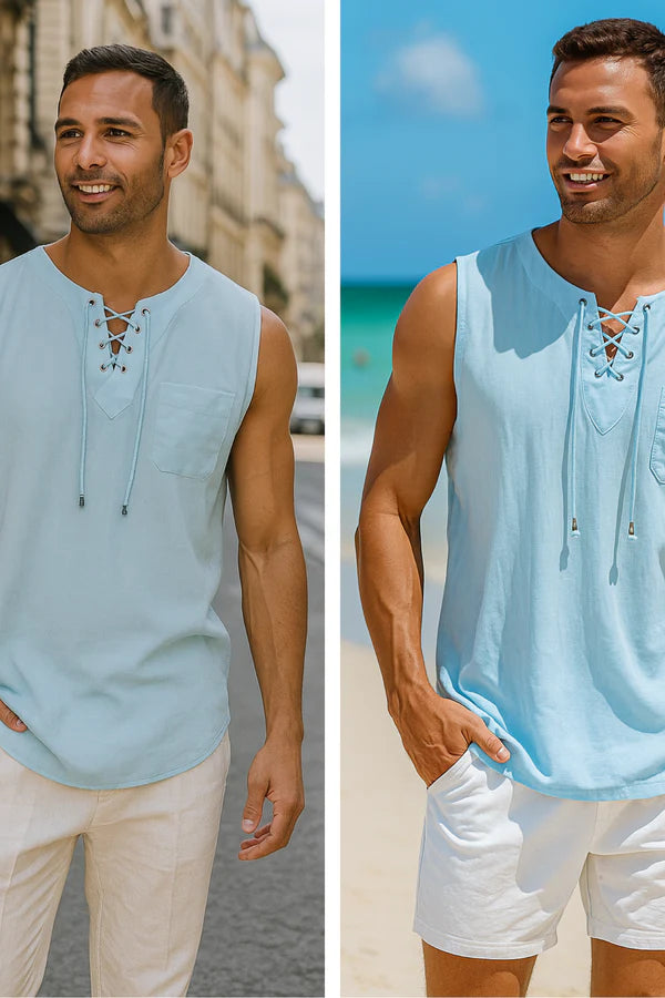Monarch Débardeur Lin & Coton – Style Rétro à Lacets