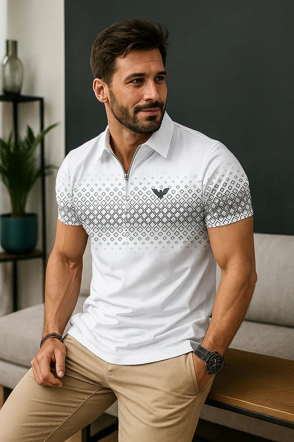 Monarch – Polo Homme à Imprimé Géométrique avec Fermeture Éclair – Élégant et Confortable au Quotidien