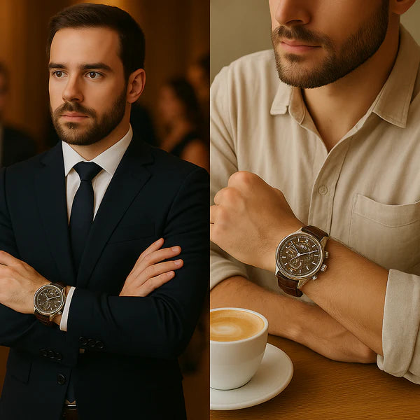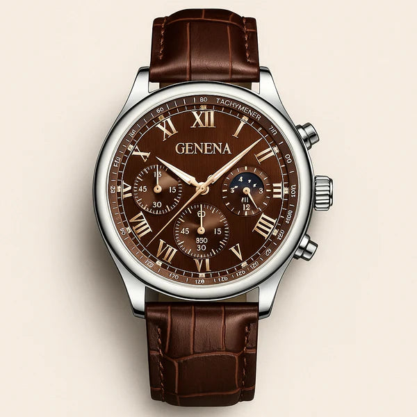 Avec son cadran raffiné et son bracelet en cuir brun luxueux, ce modèle incarne le style et la personnalité.