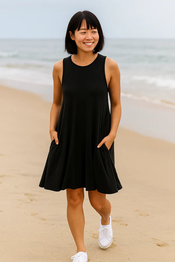 La Robe Sandi associe légèreté et praticité avec une coupe évasée, offrant fluidité et style au quotidien.